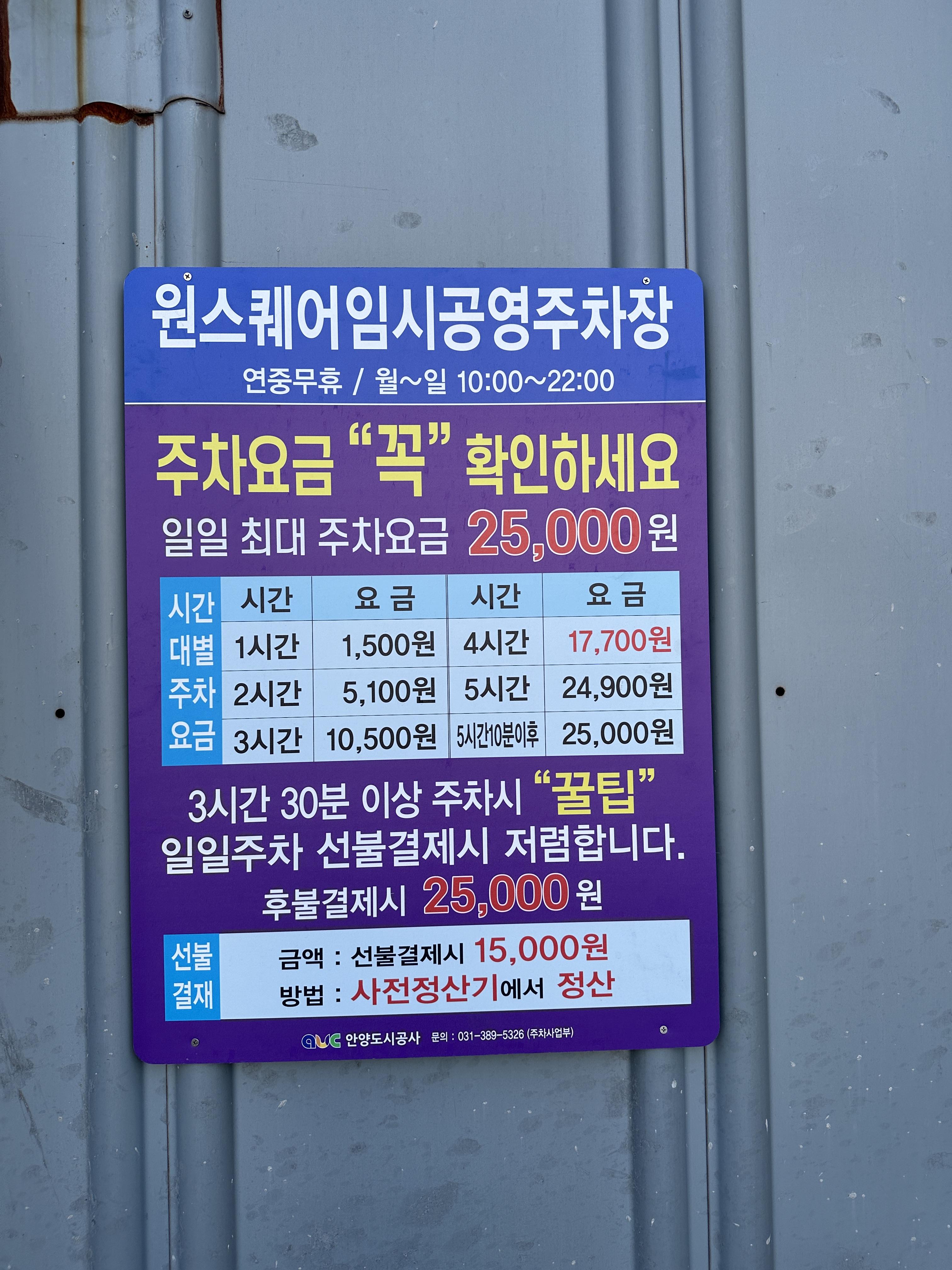 안양역 앞에 오래도록 방치되어있던 폐건물 자리에 생긴 임시 주차장입니다. 안양역 바로 맞은편에 있어요.